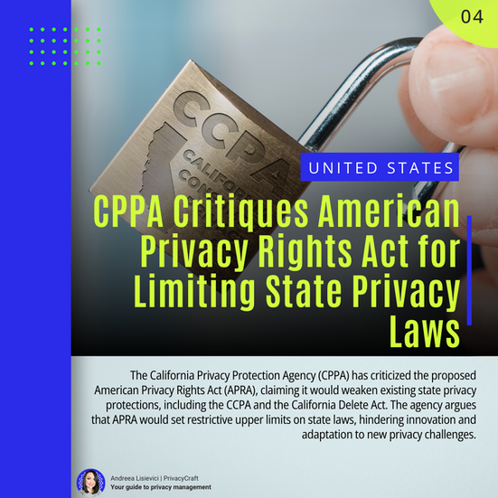 The California Privacy Protection Agency (CPPA) has strongly criticized the draft of the American Privacy Rights Act (APRA), voicing concerns over its potential to significantly weaken established state privacy protections, such as the CCPA and the California Delete Act. The agency argues that the draft legislation aims to set a restrictive upper limit on state laws, which could prevent future advancements in consumer privacy protection and adaptability to technological changes.